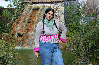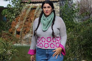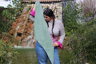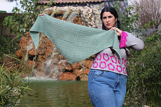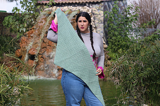 Es un chal muy versátil, fácil de hacer y que puedes tejer con cualquier tipo de hilado o grosor, dependiendo de esto, saldrá con mayor o menor tamaño. Está pensado para usar todo el hilo que tengamos disponible.