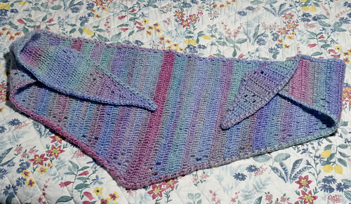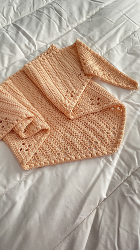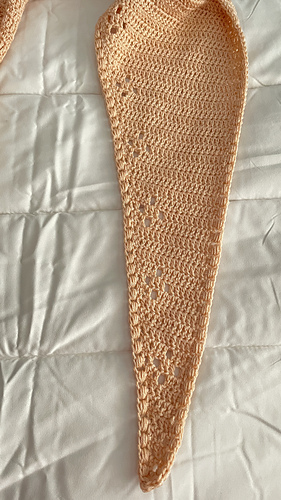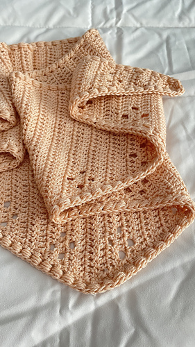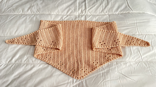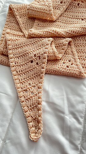 Este es un chal triangular a ganchillo que se teje de lado a lado haciendo aumentos y disminuciones en el mismo lado.