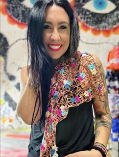 Para las flores se necesitan restos de sedas o madejas completas en los colores Green, Magenta, Flash, Sand y Aqua.