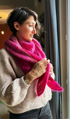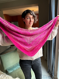Le châle a une forme triangulaire. Il se tricote en alternant 3