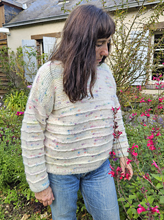 Je vous conseille de choisir une laine fantaisie avec des speckles ou chinée qui sublimera la simplicité du pull.