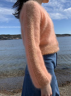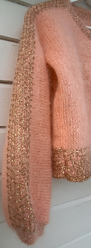 mohair og 2 p med paljett-tråd. Oppskriften gir deg også et alternativ med vrangbord på bolen.