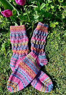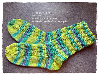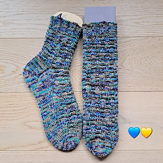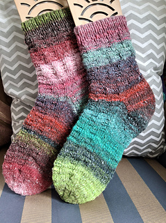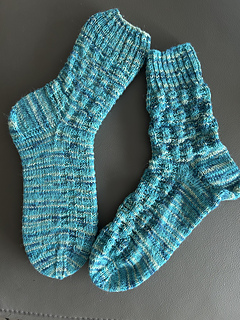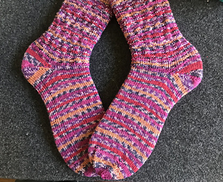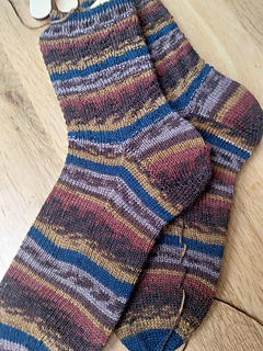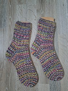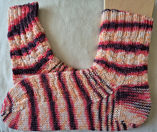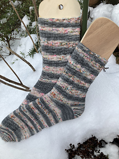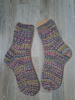 Mittel – Grundkenntnisse im Sockenstricken (Ferse, Spitze, Maschen aufnehmen) werden vorausgesetzt.
