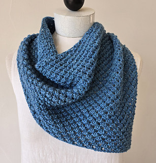 The cowl is knit flat and seamed at the neck. This unusual, knitted shape creates a cowl that wears like a triangle shawl with lots of coverage in the front and little bulk at the back neck.