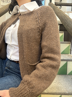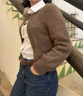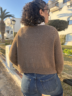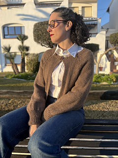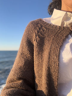 La chaqueta Mabon, está tejida de arriba hacia abajo, con un raglán muy curioso que le da un toque especial a la prenda.