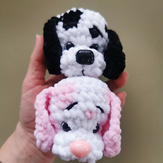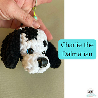Crochet Amigurumi pattern for a soft, no sew, dog keychain.