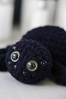 Charlotte is a no-sew amigurumi pattern. You will start by making Charlotte’s head and all eight individual legs before moving on to the body, For the body you will start by making the back before joining the head and legs as you go and finishing with the belly.