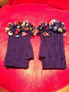 “These mitts are knit flat with simple shortrows used to form the thumb gusset, then stitches are picked up along one side to work the fringe. Attach your choice of buttons or charms for a one-of-a-kind look!”