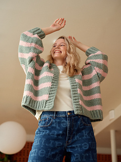 This chunky dropped-shoulder cardigan is knitted from the top down to avoid the need for any seaming. Knitted in stockinette stitch, in a simple stripe pattern, it is a quick and easy knit.