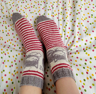 With its charming vintage red-and-white stripes, comfy 2x2 rib cuff, and its sleepy cat motif, this sock invites you to relax and drift off into sweet dreams.