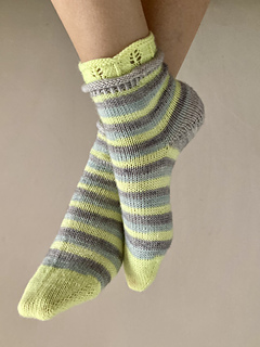 J’adore les autorayantes, mais on a tendance à tricoter des chaussettes toutes simples en jersey.