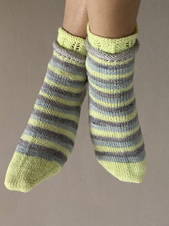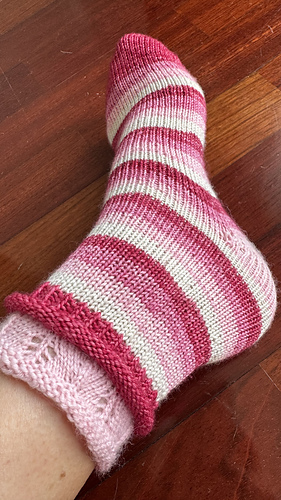 Pour pimper un peu tout ça, j’ai imaginé ces chaussettes avec une double bordure : une roulottée, et une en dentelle.