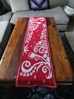 Het patroon is 80 steken breed en heeft een kleine variant met 325 rijen en een grote variant met 479 rijen, zodat je kan kiezen wat past bij jouw Kerst tafel! Je zou het evt ook kunnen gebruiken als wandhanger.