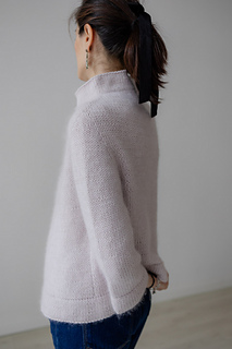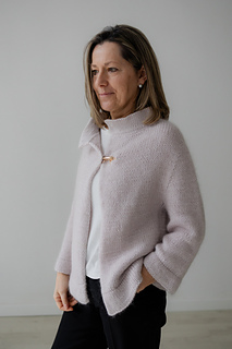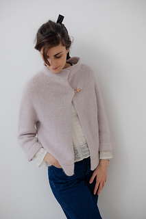 As mohair can sometimes be itchy near the neck, the collar is worked with only Aran weight yarn, to ameliorate the comfort.