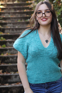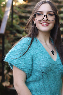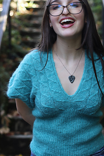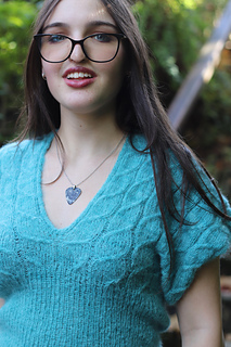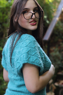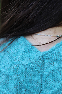 Knitted in an airy blend of suri and alpaca, hand-dyed by Le Chat Qui Tricote, Chenonceau wraps the body in a cloud of softness, with a distinctly feminine charmIts pattern, composed entirely of cables, structures the front and back in a fluid rhythm, highlighted by a wide ribbed band at the hem that grounds the silhouette.