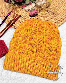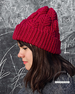 ♡ CHERRY leaves beanie is worked in one piece, brim included, has a few slices joined as you go, only one sewing line at the back of the head and it’s cropped.