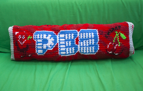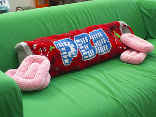 This pattern will show you how to crochet this fun cherry flavored PEZ pillow. This giant candy packaging is perfect to crochet for yourself or loved ones that love to have weird objects in their house.