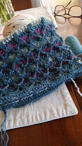 If you struggle to find worsted weight, then you can also hold fingering yarn (400m per 100g) doubled up which adds a nice feature (and is what I did in my pink version).