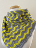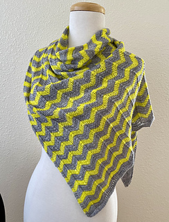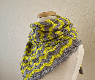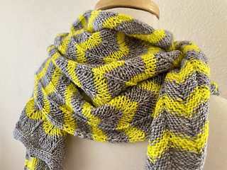 Knit this chevron shawl in the striped pattern shown with just two skeins of luxurious yarn, or show off the geometric stitch pattern by substituting colorful scraps!