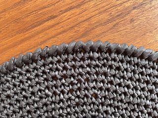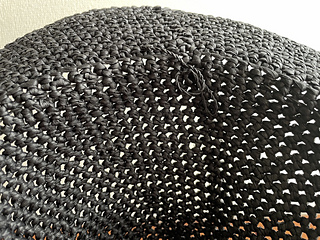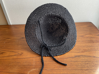 there are 2 important finishing steps. first, a crab stitch is worked while carrying craft wire along, which helps the brim to stay flat. second, a cord is threaded through the stitches at the brim transition. this helps keep the brim angle looking crisp.