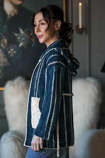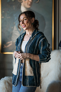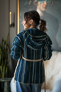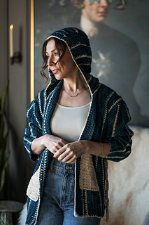 Cozy up in this oversize crochet sweater! Chillyjoy is a modified drop shoulder sweater that’s worked from side to side for both the body and sleeves. The hood is picked up and worked directly from the body, and then pockets and a belt round off this generously sized cardigan. The large hook promises a relatively quick sweater project.