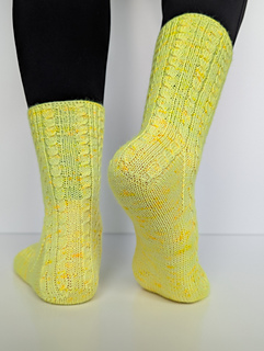 I love knitting socks and cables, but so often I find myself agonizing over which size to knit, and I’m always disappointed when my sock turns out to be tighter than I like. In this pattern, I’ve used carefully placed increases and decreases to take the guesswork out of choosing the best size to knit -- just cast on for your normal size using your favorite sock yarn and sock needles! This technique also allows the cabled ribbing to flow nicely without extra stitches to flare out the cuff. The cables and ribbing are mirrored on the left and right sock and flow down into the heel flap and into the toe of the sock for an extra cozy texture that is engaging to knit without requiring too much of your focus.