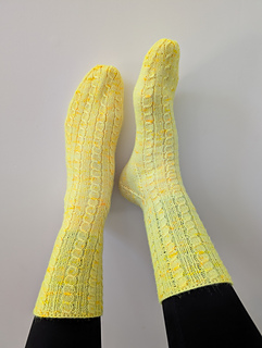 Sock by Teal Torch Knits, 75% superwash merino wool/25% nylon, 463 yds (423 m) per 3.5 oz (100 g): 1 skein (shown in Dose of Sunshine) OR approximately 400 yds (366 m) light fingering to fingering weight yarn.