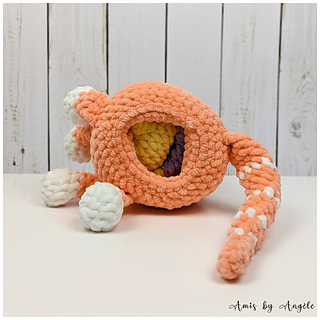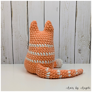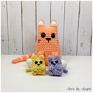 In Sweet Snuggles Lite/Chenille Home Slim yarn, Chloe is 22 cm (8.5 in) tall and the kittens are 8 cm (3 in) tall.