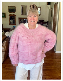 Sample shown: Cardigan in Boboleros Amber Nocturne colorway/ Vivian Brushed Mohair DK: 720 yards/ 4 skeins