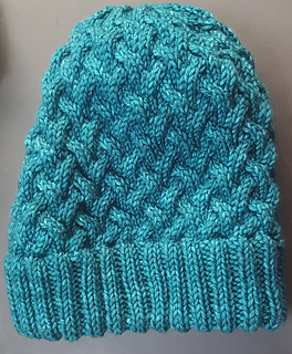 This pattern uses a simple cable sequence to add texture to a standard stockinette hat and is a perfect project for beginners who want to try cables.