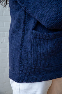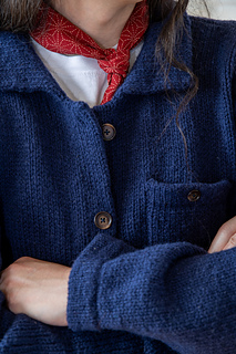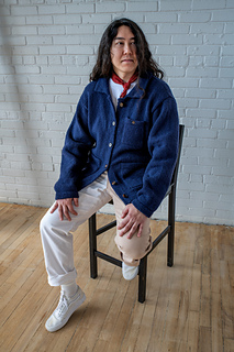 Chore is a structured unisex jacket, with double-layered hems, button bands and collar. It features 2-3 useful pockets, and special details such as faux garter stitch seams, and a button at the back of the collar.