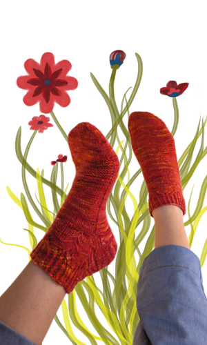 Les chaussettes choucas se tricotent de la tige vers la pointe. Elles sont ornées de textures géométriques sur la tige et le pied rappelant des oiseaux. Ce lignes et triangles sont simples à faire et adapté à un premier projet de chaussette. Pour une personne plus aguerrie, le motif est dynamique et permet un moment tricot amusant sans difficultés.