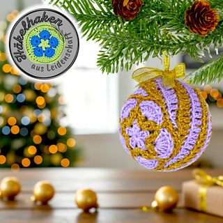 If you’re looking for a beautiful and unique decoration for Christmas, you can delight yourself and your friends with these sparkling Christmas ornaments. They will certainly make a great impression on your Christmas tree. You can also gift them to your friends and relatives, as a little present for Advent or as a set for Christmas. This homemade Christmas ornament with gold and silver accents will truly stand out on your tree. The idea for these Christmas balls was inspired by African Flowers. This modern crochet technique can be applied in various ways.