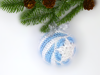 For this ball size, you will need glitter yarn and cotton yarn, each about 125 m per 50 g (Sport (12 wpi)). I used about 15 g of yarn for one ball.