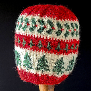 Years ago, Fran made Christmas stockings for everyone in her family. She chose her favorite motifs from that project to create this cheerful beanie. Fran also designed a set of mitts to match!