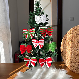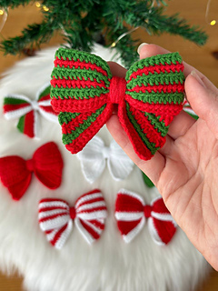 You’ll find a crochet pattern for Christmas Bow. This fun amigurumi PDF pattern includes written instructions and step by step pictures and video that explain how to crochet these tree decorations.
