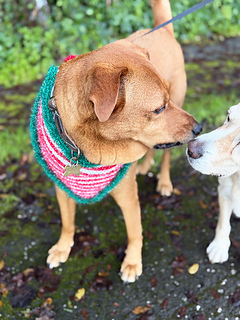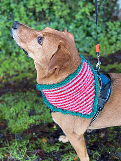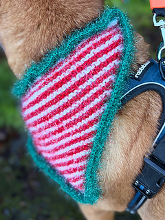 It’s worked in simple garter stitch from the tip up, with easy increases and long ties that knot comfortably behind your dog’s neck.