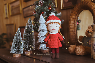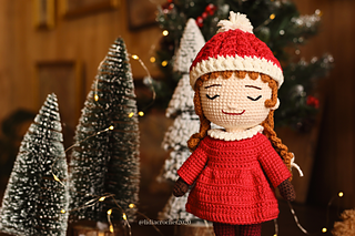 This adorable Christmas Doll is crocheted in one piece from the legs up to the head using single crochet stitches. No sewing is needed for the body — it’s worked seamlessly for a clean and sturdy shape.