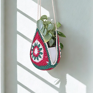 Looking for a Christmas crochet pattern that exudes vintage holiday vibes? This holiday crochet plant hanger pattern brings nostalgic charm to your home with cozy red, green, and white yarns, classic granny square texture, and the perfect touch of handmade holiday spirit.