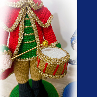 Yarn colors needed: skin color, green, black, gold brown, red, dark brown, white, dark blue, blue, light gray, light yellow