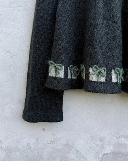 Christmas Morning Tunic is part of our 2025 Christmas collection. The tunic features little presents with i-cord bows around the bottom of the body. The tunic has a round yoke, a slight A-line shape in the body and straight sleeves. Both body and the sleeves are finished with a folded edge, while the neckline has an i-cord edge that ends up in a bow in the back. Christmas Morning Tunic is worked from the top down using 1 strand of Merino + 1 strand of Soft Silk Mohair held together throughout.
