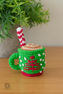 This crochet Christmas Mug Ornament - Candy Latte pattern is an ad-free, printable version of the free pattern from the Little Crochet Farm website. It includes detailed instructions and helpful step-by-step photos to guide you through the process.