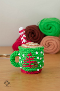 Christmas Mug Crochet Ornament PDF Pattern. Mini Christmas Ornament Amigurumi Candy Latte