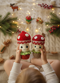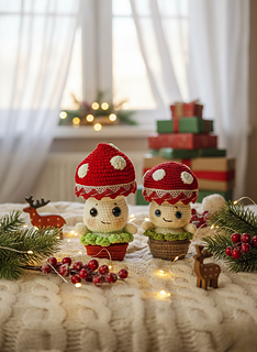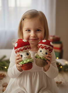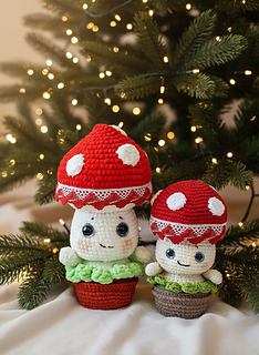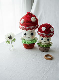 With this pattern you can knit two sizes of amigurumi mushroom - 14 cm (5.5 inches) and 19 cm (7.5 inches).