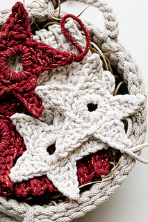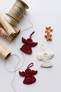 The yarn used: Bobbiny 3 mm. 1 Bobbiny is enough to make 4 Christmas trees, 4 stars, 4 angels and 4 hearts.