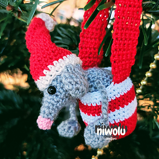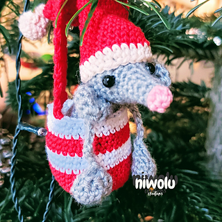 Cute little Christmas rat with its very own basket for hanging. The pattern is easy - you only need to know these stitches: