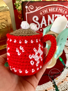The pattern contains steps-by-steps instructions to crochet an adorable fair isle snowflake mug that is perfect for a festive play kitchen. The pattern also contains pictures to help you along the way.