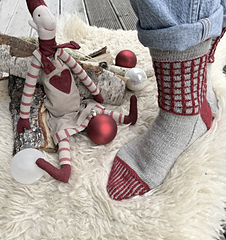 The heel has a heel flap and a small charted motif, which can also be embroidered afterwards using duplicate stitch. The toe is worked in stripes. The sock is worked from the top down and the pattern is written for DPNs.