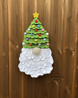 Bring a touch of handmade magic to your holiday decor with this crochet Christmas tree Gnome wreath.
