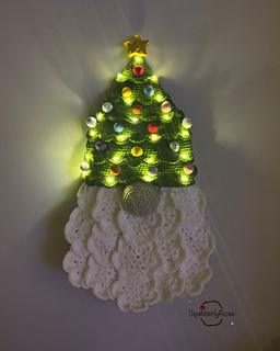 This fun and festive crochet pattern features a light up Christmas tree hat and motif white beard.